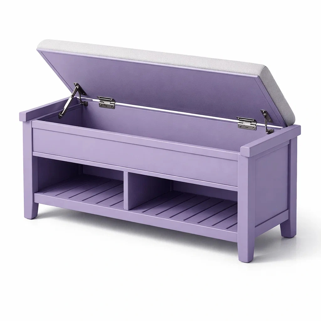 Aufbewahrungsbank aus holz mit stauraum und polyesterpolster lila 120x40x50 cm