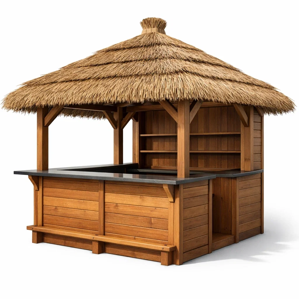 Material: Rahmen aus Teakholz, Dach aus Bambusstroh